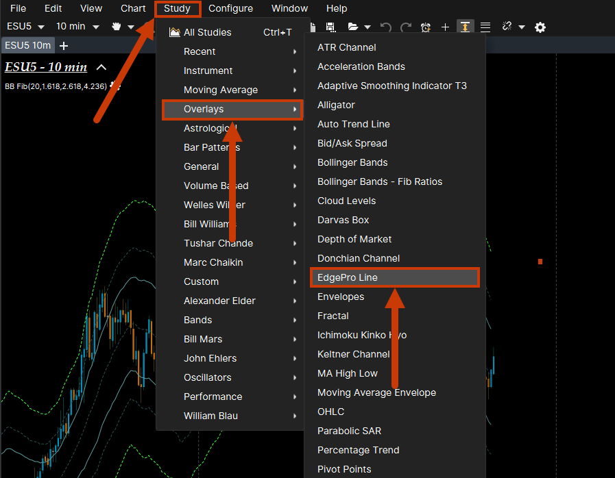 EdgeProX offers a variety of different studies which will allow traders to compare different instruments on one chart. To access EdgeProX's instrument studies, select "Study" from the upper toolbar of EdgeProX and then "Instrument". Please refer to ...