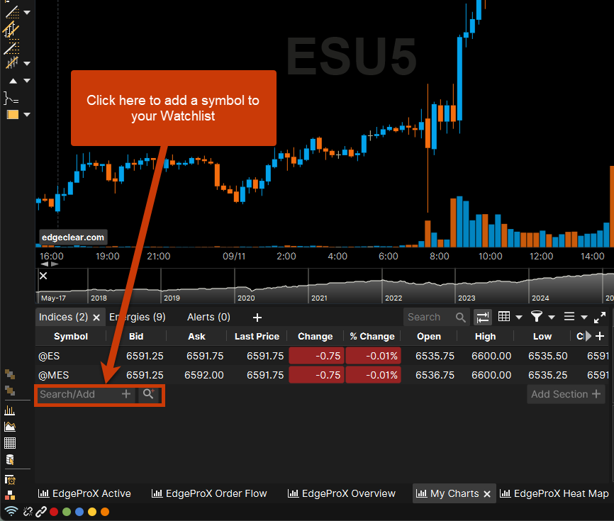 1. Click on the Search/Add Instrument button in the Watch List tool bar.