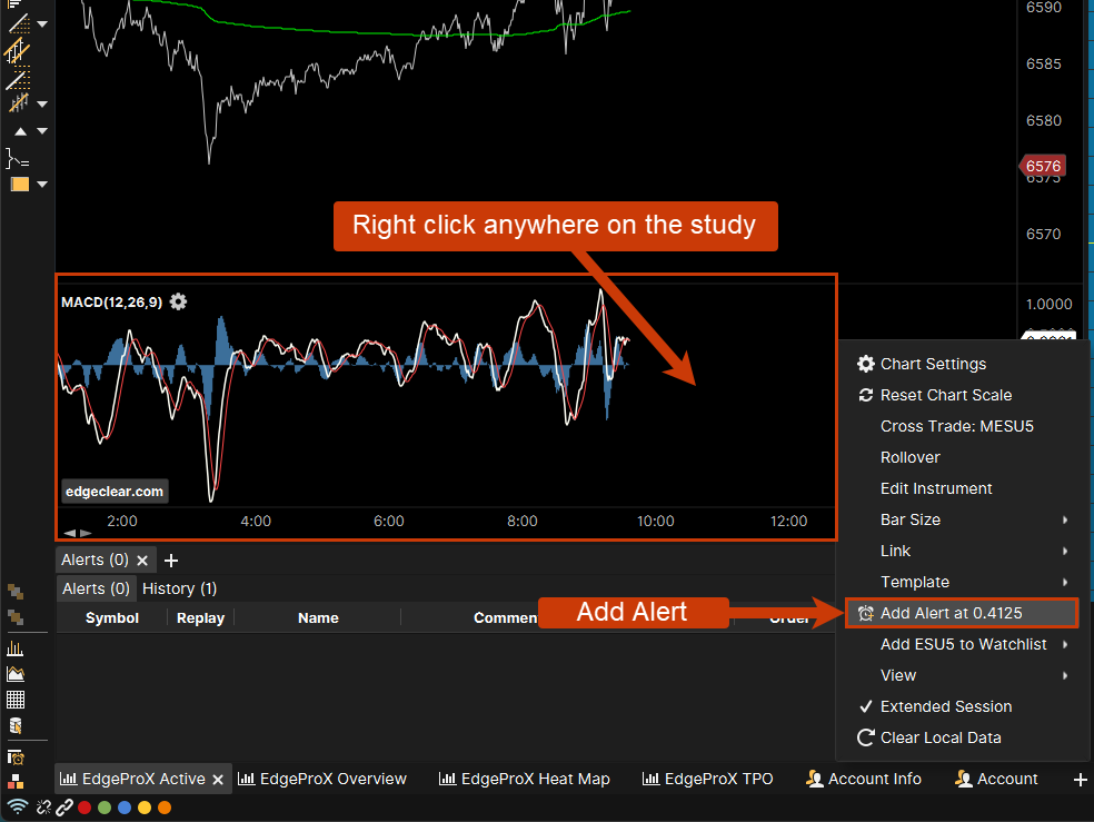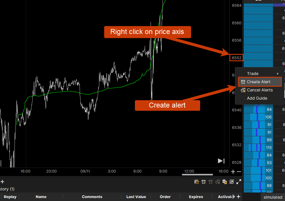 You can also create an alert by right-clicking on the Price Axis and selecting, "Create Alert."