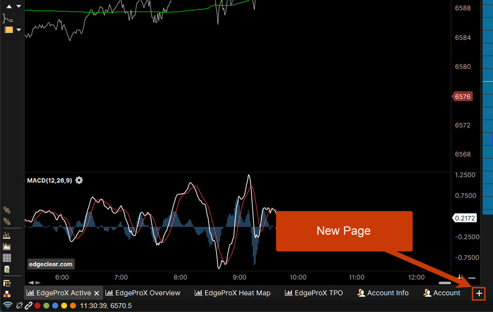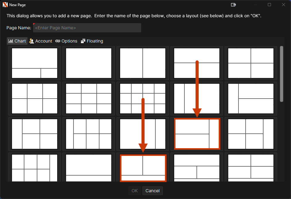 Once the next window appears select a Chart Layout, select a layout with a small sub-bar attached. Select the desired location for the sub-bar, and then press "OK". NOTE: Selecting "Reset Layout" will reset EdgeProX to default settings and charts. This action cannot be undone.