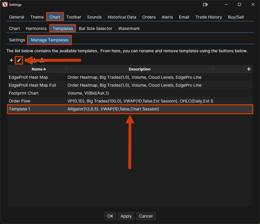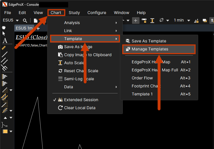 To edit/delete a template, navigate to Chart > Template > Manage Templates.