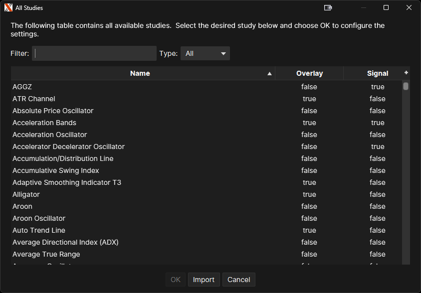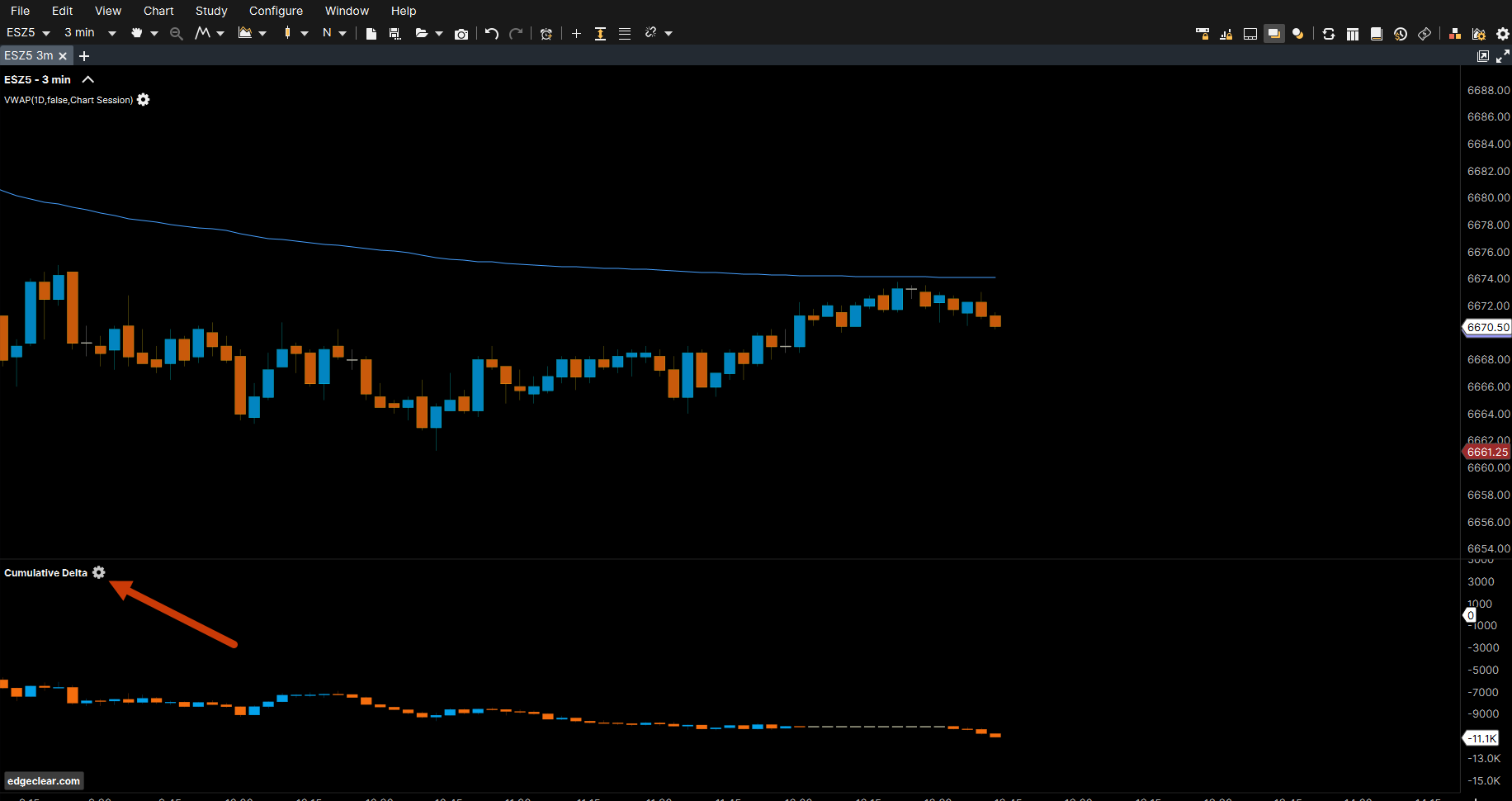 The first step in accessing the, "Cumulative Delta" study is to pull up the, "All Studies" menu. You can pull up all the studies by holding, "CTRL" and pressing, “T”.