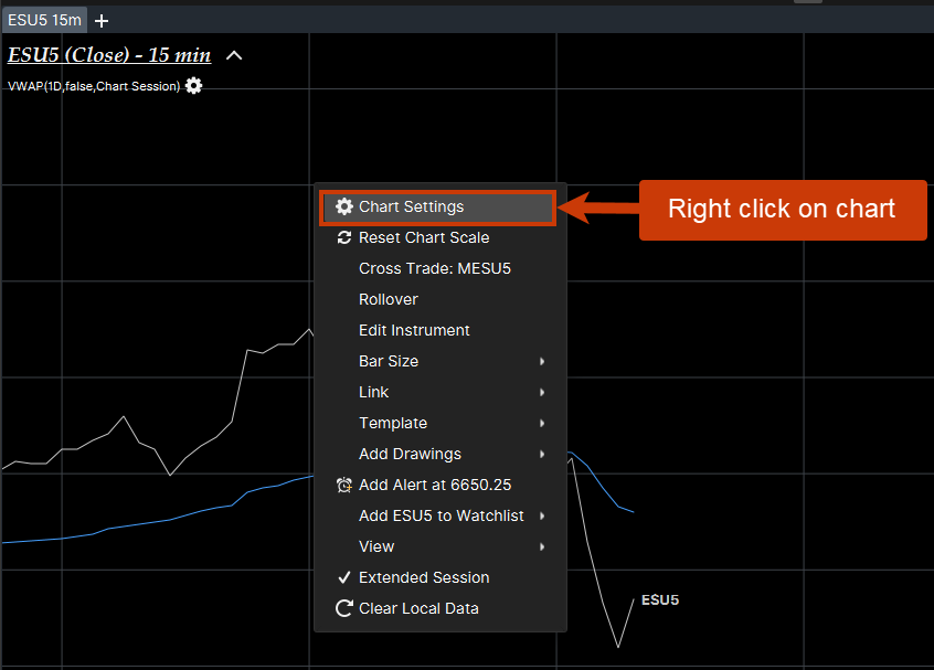 3. You can also set your charts to have a fixed range between the horizontal and the vertical axis. This can be done by right clicking anywhere on your chart and selecting Chart Settings. This will bring up the Chart Settings menu.