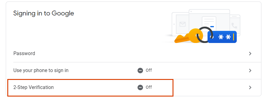 3. Find the section that reads, "Signing in to Google." Make sure two factor authentication is turned off.