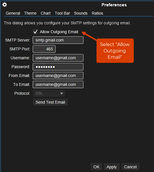 Substitute username@gmail.com with your Gmail address! Port 465 is for SSL and port 587 is for TLS.