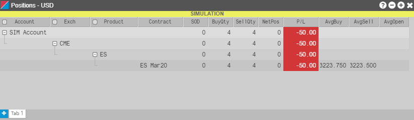 The Positions widget displays statistical data related to any positions currently held on the trading account. Fields such as the exchange, product, contract, buy/sell quantity, profits/losses are listed by default. More columns can be added by Right Clicking over any single column along the top, and selecting Edit columns...