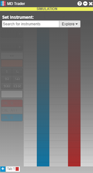 2. Left click the Set Instrument search box in the top left of the MD Trader widget and then manually enter in the contract’s symbol that you would like to trade or left click the explore button to search through TT’s database of symbols. Symbols are sorted by exchange, type, product, and finally instruments.