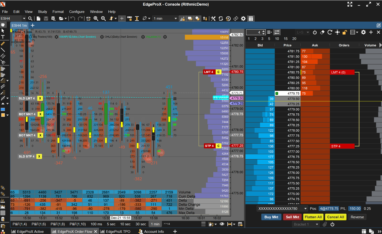 In this example, we are attaching OCO stop and limit to an existing 4 long ES position.