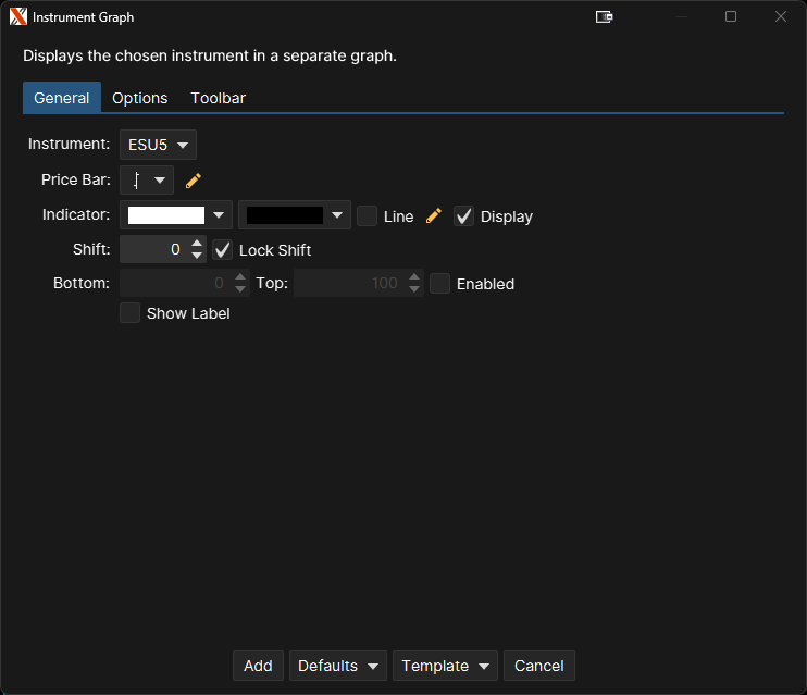 1. Instrument - Type or select the symbol of the Instrument you would like to display in the Instrument Graph