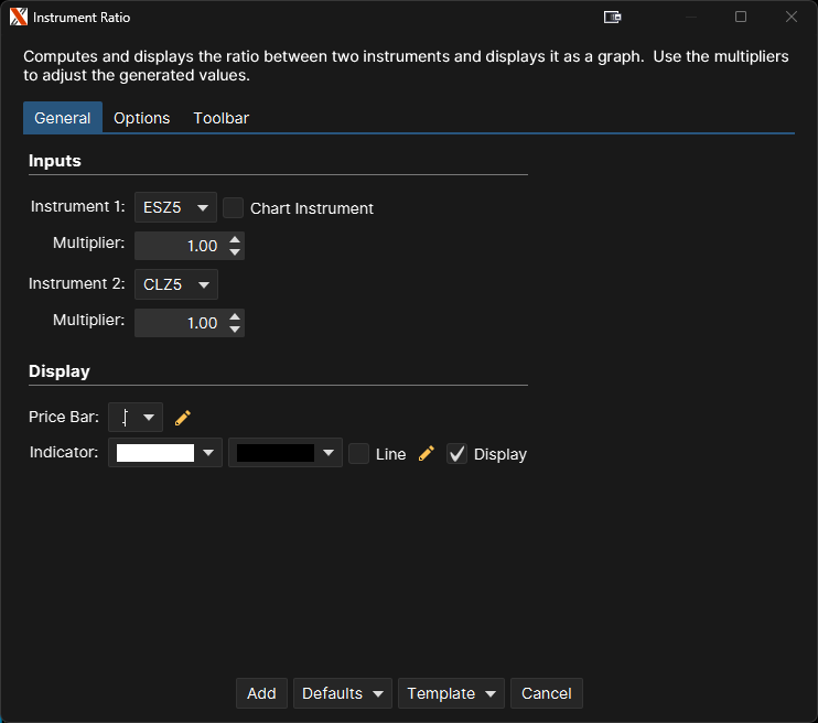1. Instrument - Type or select the symbol of the instrument you would like to overlay