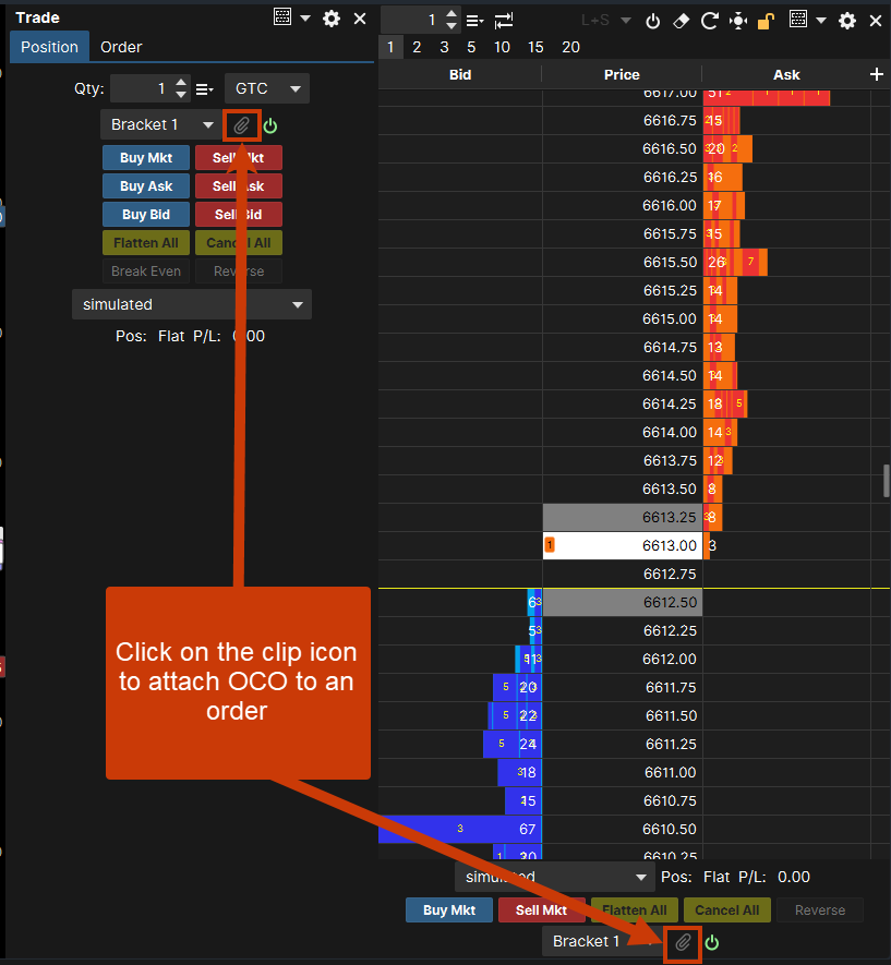 Then click on the 'Attach Clip' icon next to the power button to add your OCO brackets to an already executed order (image below).
