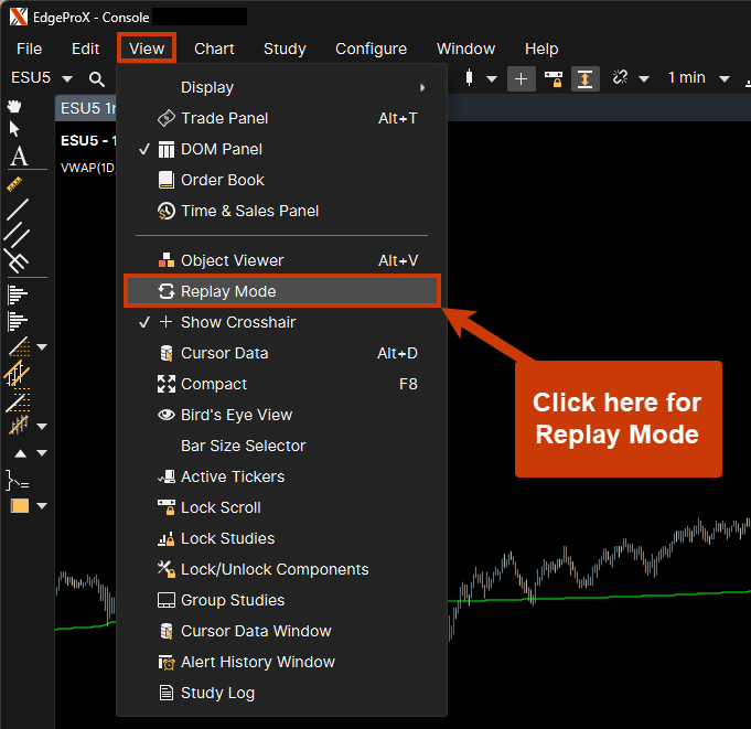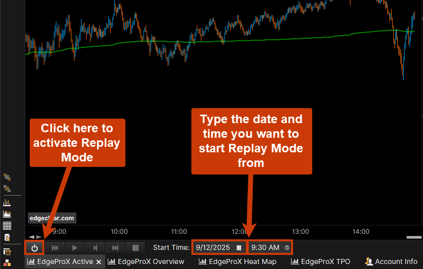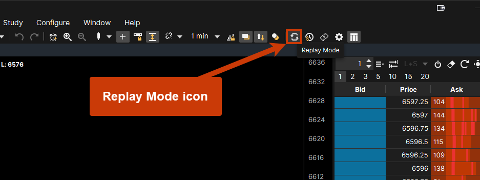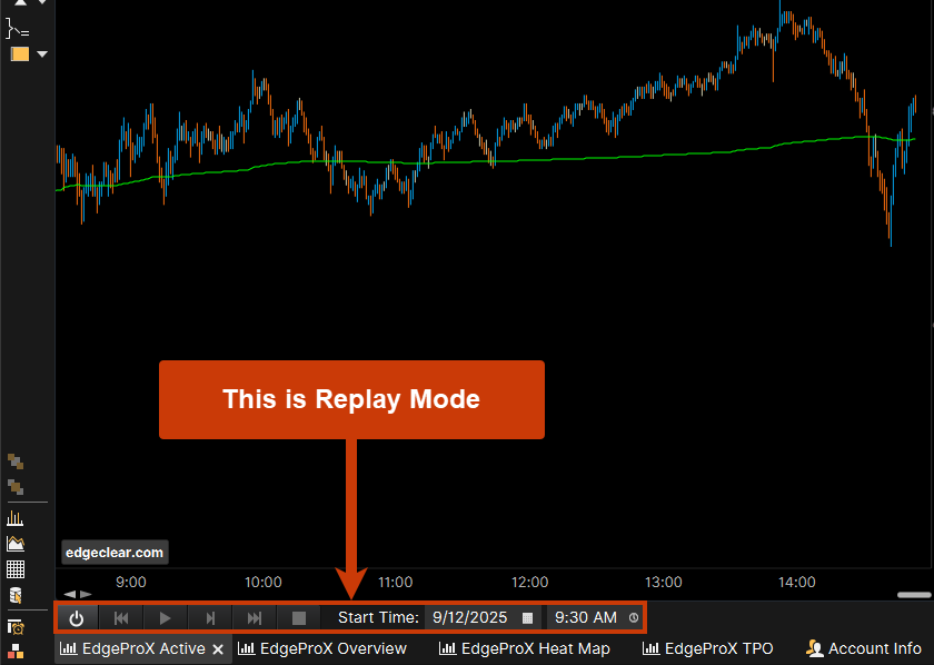 Replay mode is a tool that allows you to go back in time and replay market data from a set time period. This enables you the ability to practice trading, and test studies and strategies.
