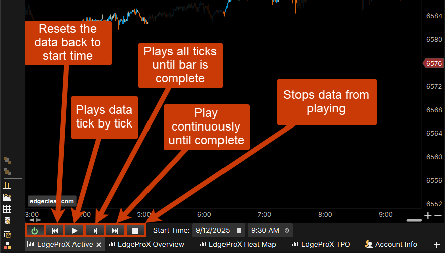 4. The below will go over all the buttons in Replay Mode and their functionality within replay mode.