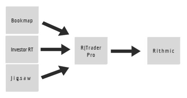 platforms (ex. Bookmap, Investor R/T, Jigsaw) as apps plugged into the