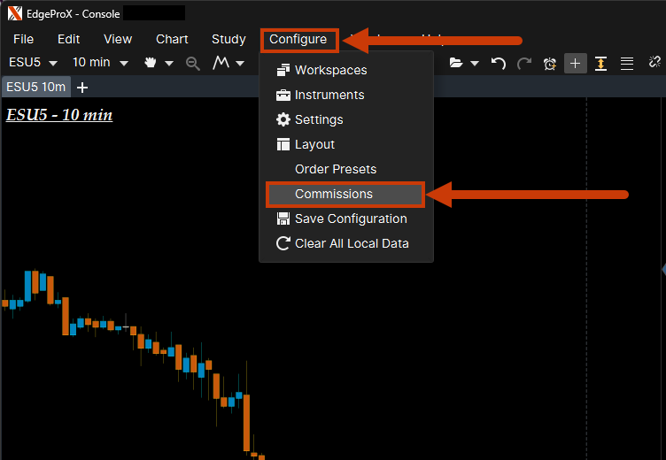 How to Set Commissions on EdgeProX Commissions can be set for live trading, simulated trading, or during Replay Mode. To set default commissions on EdgeProX, select the "Configure" button on the top menu row. Once the dropdown menu appears select ...