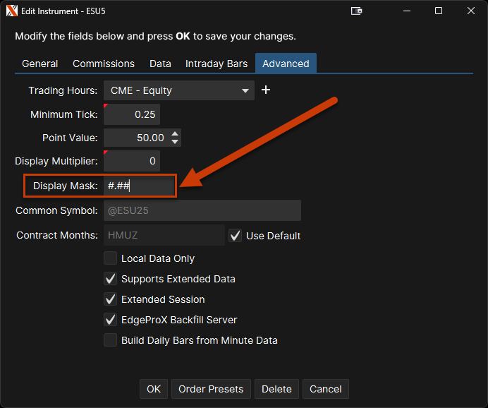 To change the display mask of a chart, right-click on the chart and select "Edit Instrument".