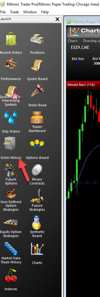 1. Left click the Order History button in the Launch window.